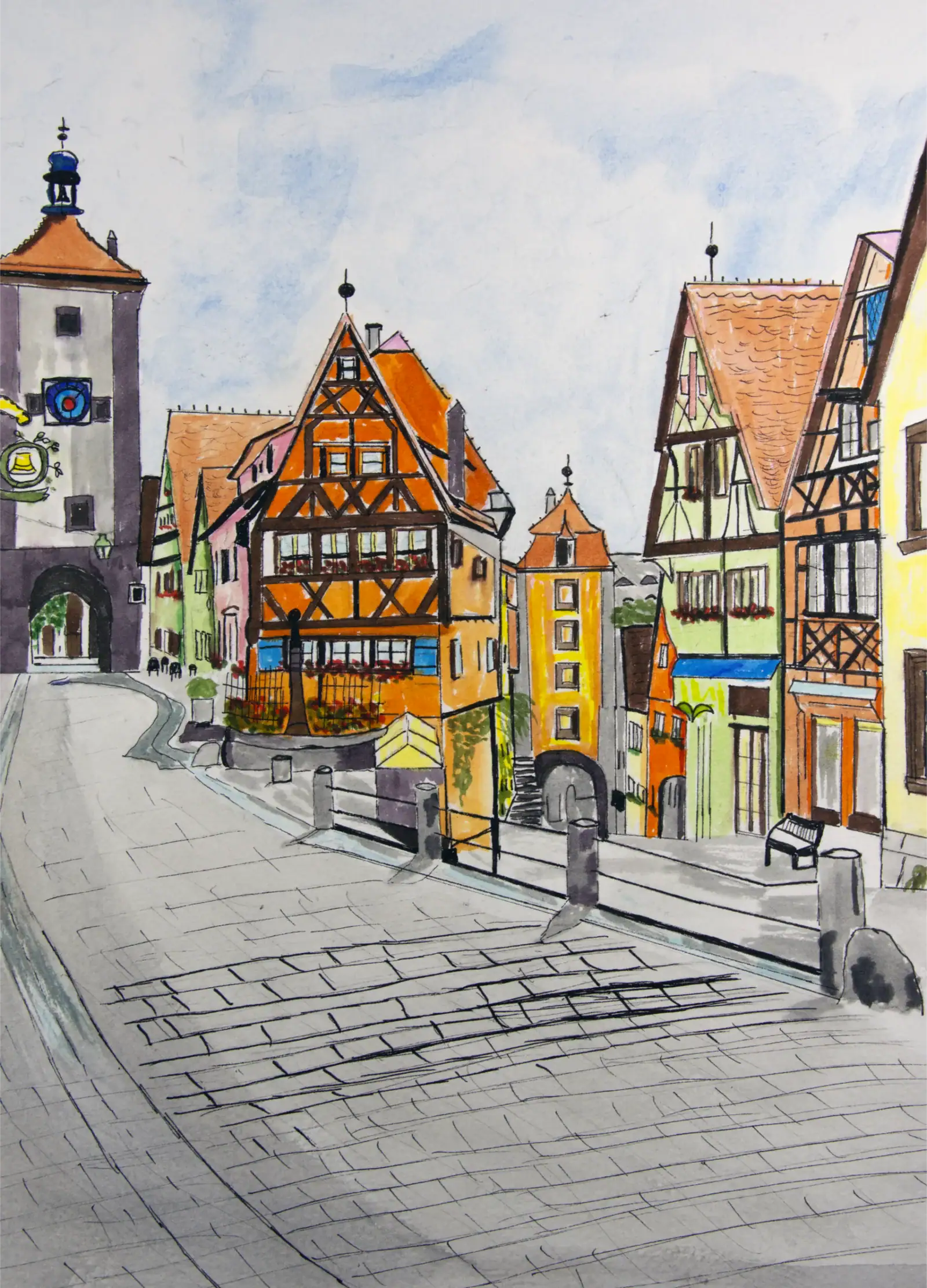 Recently, I’ve started working with acrylics on canvas, drawn by the medium’s rich, vivid colours. I particularly enjoy painting landscapes—from scenes close to home to unforgettable views from travels across Europe.